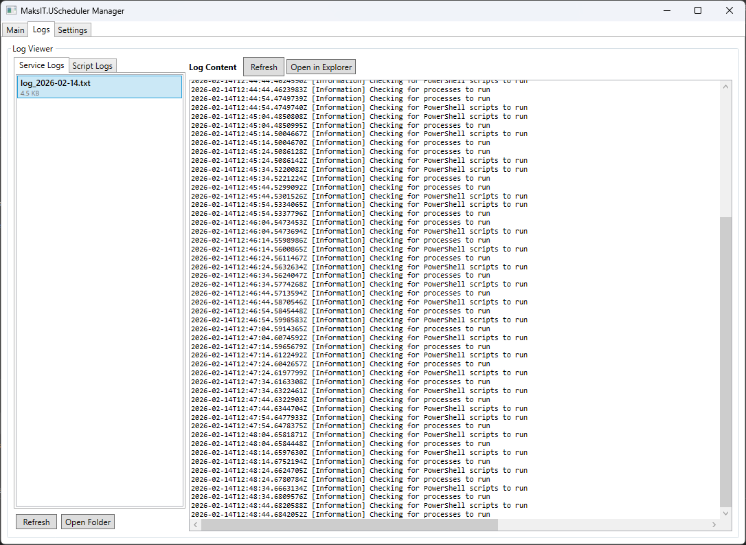 A modern, fully rewritten Windows service built on .NET 10 for scheduling and running PowerShell scripts and console applications. Designed for system administrators — and also for those who feel like system administrators — who need a predictable, resilient, and secure background execution environment.